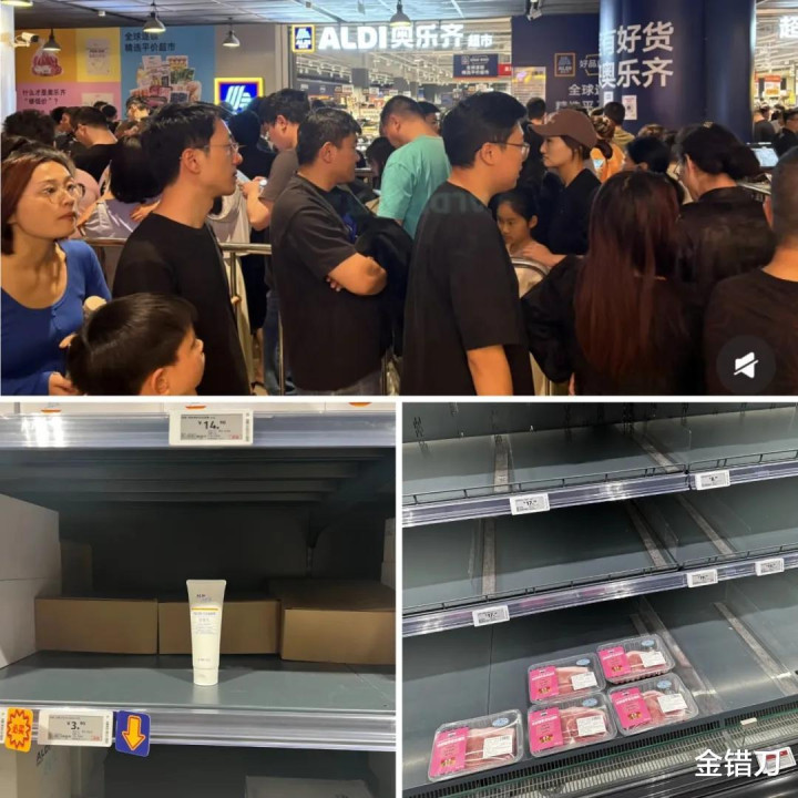 4月19日奥乐齐在无锡、江苏开了两家新店,开业半个多月仍然人挤人,赶上五一放假去尝鲜、打卡的人纷纷排队抢购,清空了不少货架。